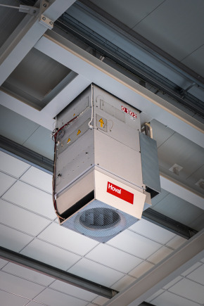 Do haly byly instalovány dvě vzduchotechnické jednotky RoofVent s integrovaným tepelným čerpadlem a doplňkovým elektrickým registrem. Tyto jednotky zajišťují efektivní výměnu vzduchu s rekuperací tepla včetně vytápění a chlazení prostoru. Díky tomu je možné dosáhnout stabilního a příjemného klimatu po celý rok a při minimálních energetických nákladech.