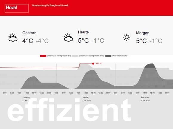 Ob alles stimmt, sehen Sie auf einen Blick. Und wenn Sie mal abschalten wollen? Kein Problem: HovalConnect informiert Sie im bei Bedarf automatisch – per E-Mail, online oder Push-Benachrichtigung.