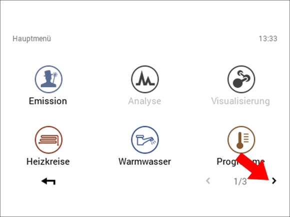 Klicken Sie unten rechts auf den Pfeil um auf die 2. Seite mit Einstellungsmenüs zu gelangen.