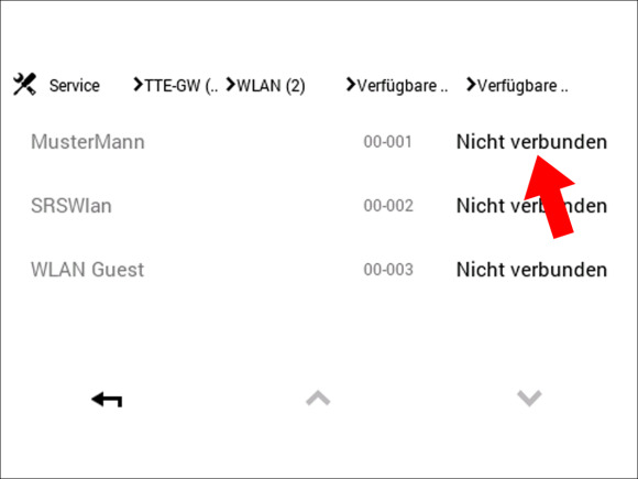 Hinweis: Sollte Ihr Wunsch WLAN nicht direkt sichtbar sein, klicken Sie auf die Pfeiltaste unten rechts um nach unten zu scrollen bis Ihr Wunsch WLAN angezeigt wird.