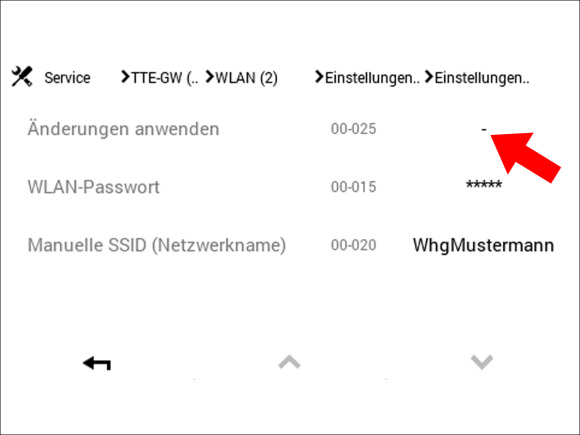 Prüfen Sie ob in der Zeile "Änderungen anwenden" rechts die Bezeichnung "Anwenden" angezeigt wird. Klicken Sie nun abschliessend links unten 6x auf die "Zurück" Taste um auf den Home Bildschirm zurückzukehren.