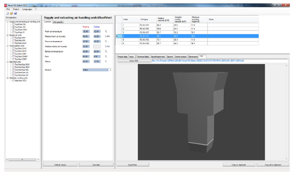 Navržený program HK Select zjednodušuje projektování větrání, vytápění a chlazení hal. Program zahrnuje všechny vzduchotechnické jednotky z výrobního programu Hoval. Poskytuje technické údaje pro projekt: na základě vstupních dat a okrajových podmínek vypočítá kompletní technická data vzduchotechnického zařízení (včetně např. výkonu zpětného získávání energie). Uživatel zvolí zařízení a jedním kliknutím získá všechny technické údaje.